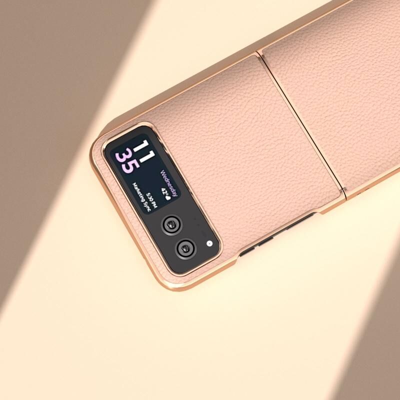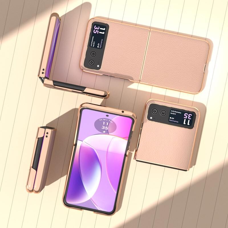Θήκη κινητού τηλεφώνου Motorola Razr 40 Nano με γνήσιο δέρμα και επιμετάλλωση + PC με υφή Litchi (Πράσινο)
