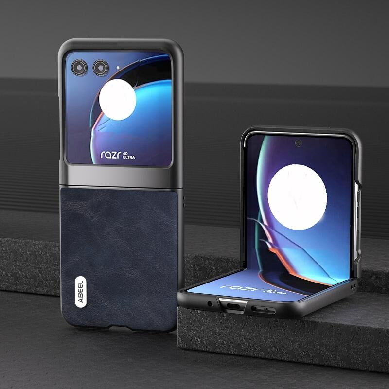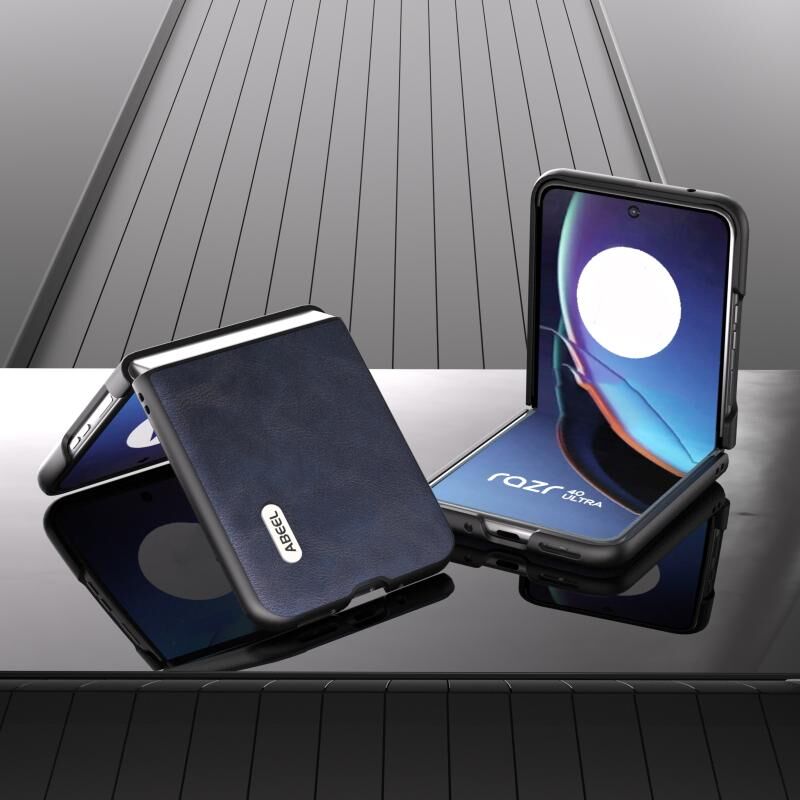 Θήκη τηλεφώνου Motorola Razr 40 Ultra ABEEL με υφή δέρματος αγελάδας PU (Μπλε)