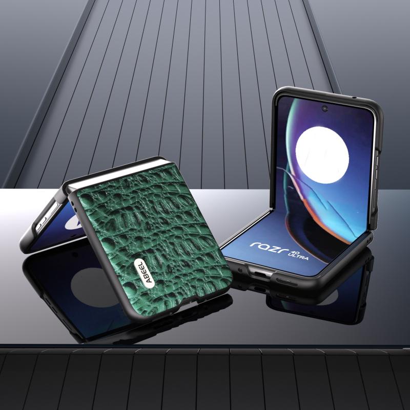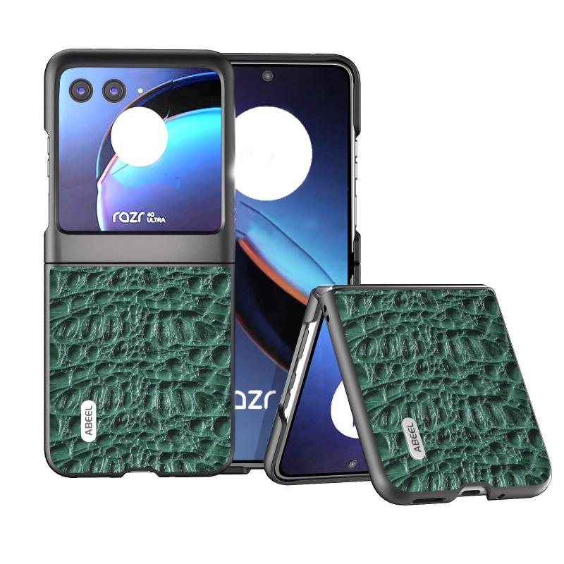 Θήκη Motorola Razr 40 Ultra ABEEL από γνήσιο δέρμα - Μαύρο (Πράσινο)