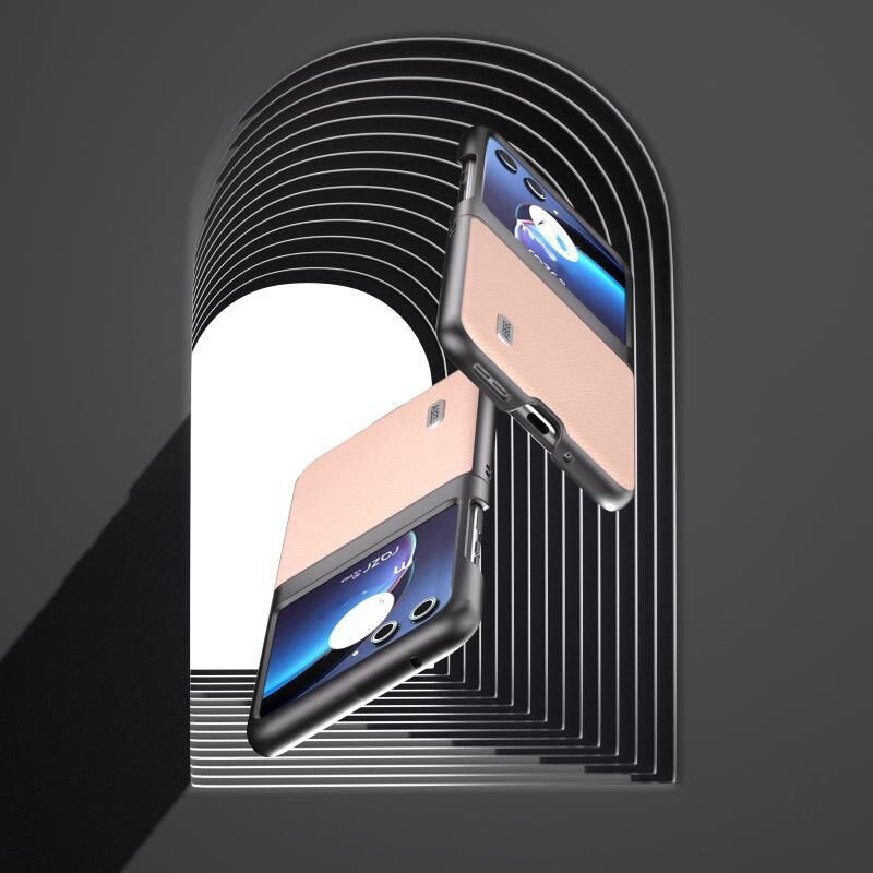 Θήκη τηλεφώνου Motorola Razr 40 Ultra ABEEL από γνήσιο δέρμα + PC με υφή Litchi (Ροζ Χρυσός)