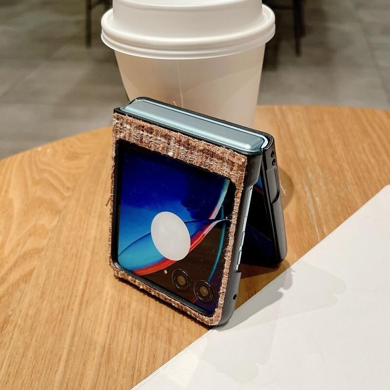 Για Motorola Razr 40 Ultra καρό ύφασμα PC Προστατευτική θήκη τηλεφώνου (ροζ)