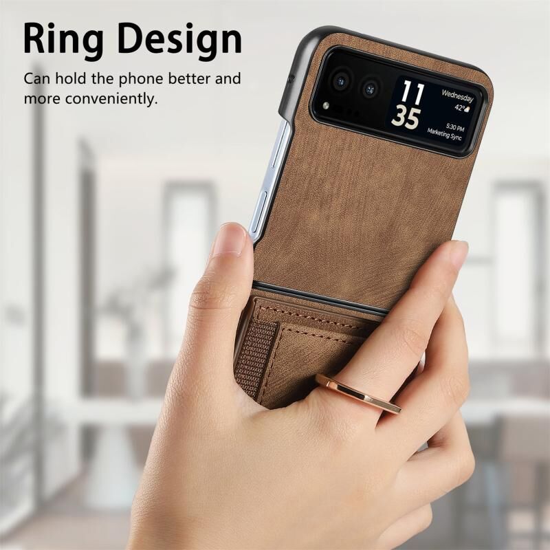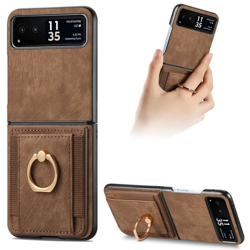 Για το Motorola Razr 40 Ultra Retro δέρμα-συναίσθημα δαχτυλίδι πολυ-κάρτα πορτοφόλι υπόθεση τηλεφώνου (καφέ)