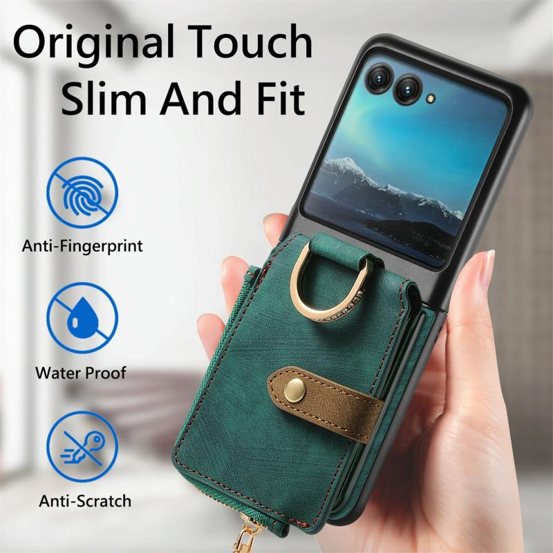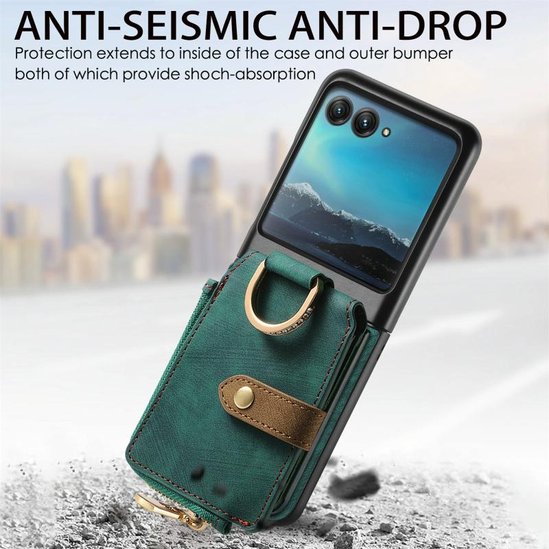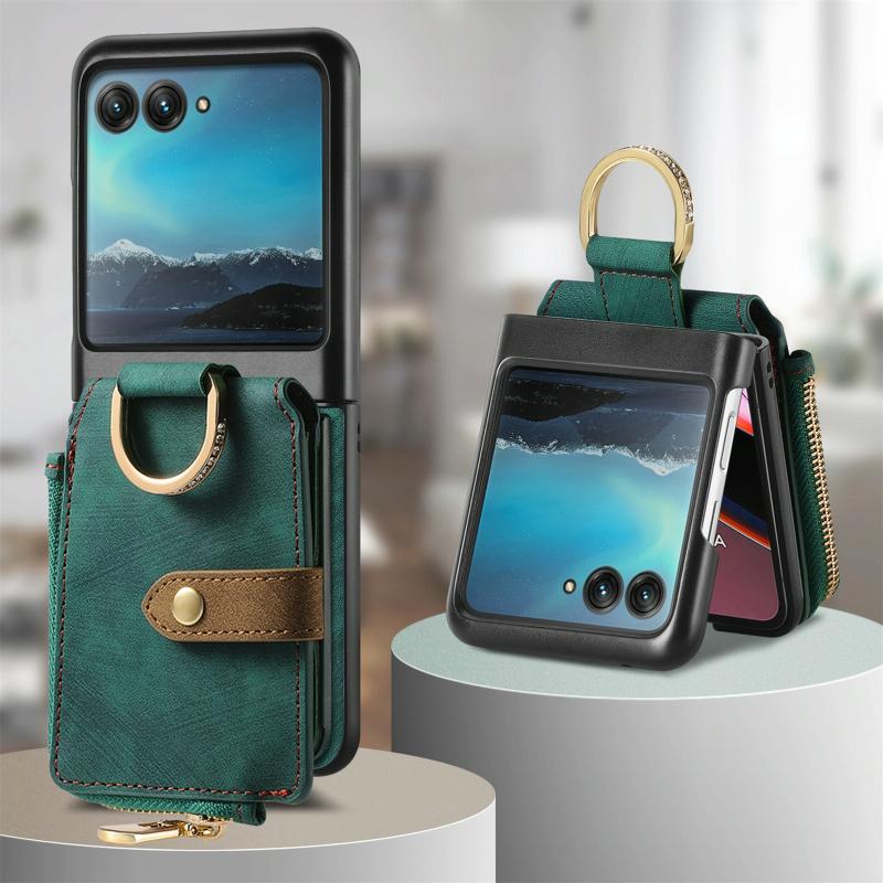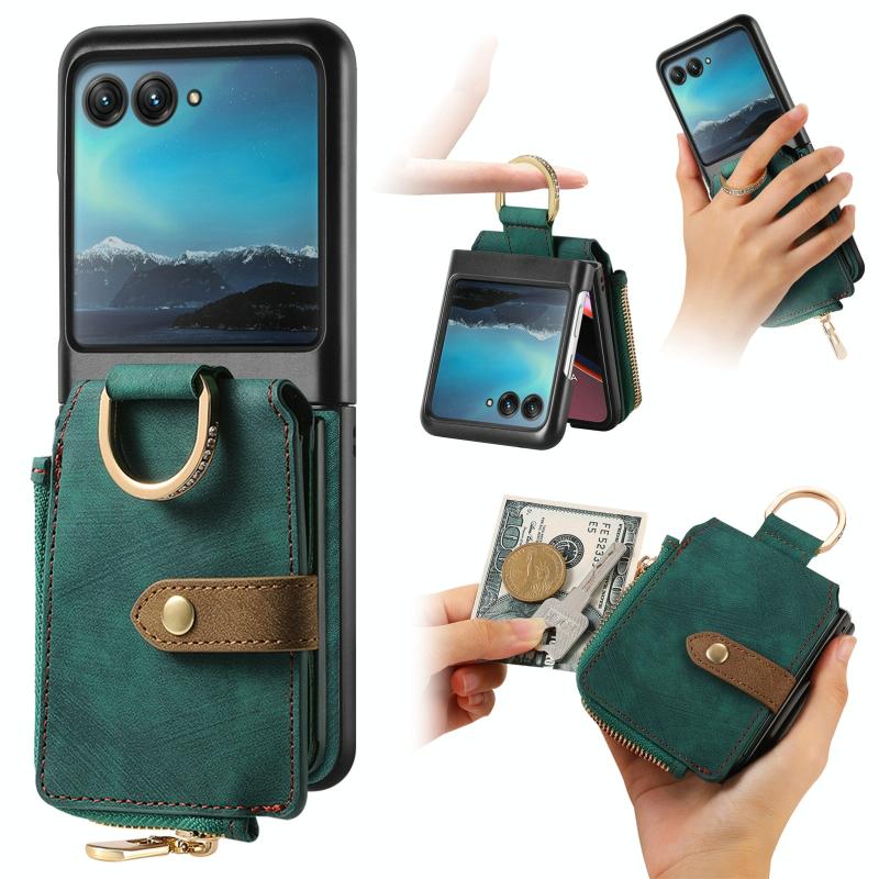 Θήκη Motorola Razr 40 Ultra Retro με Δαχτυλίδι & Θήκη Καρτών (Πράσινο)
