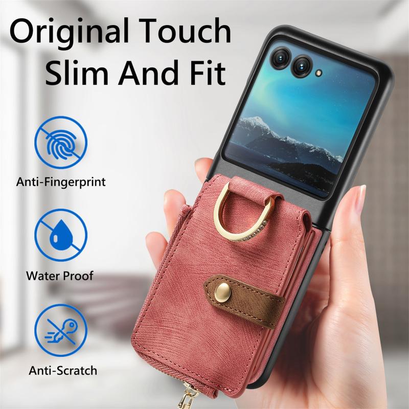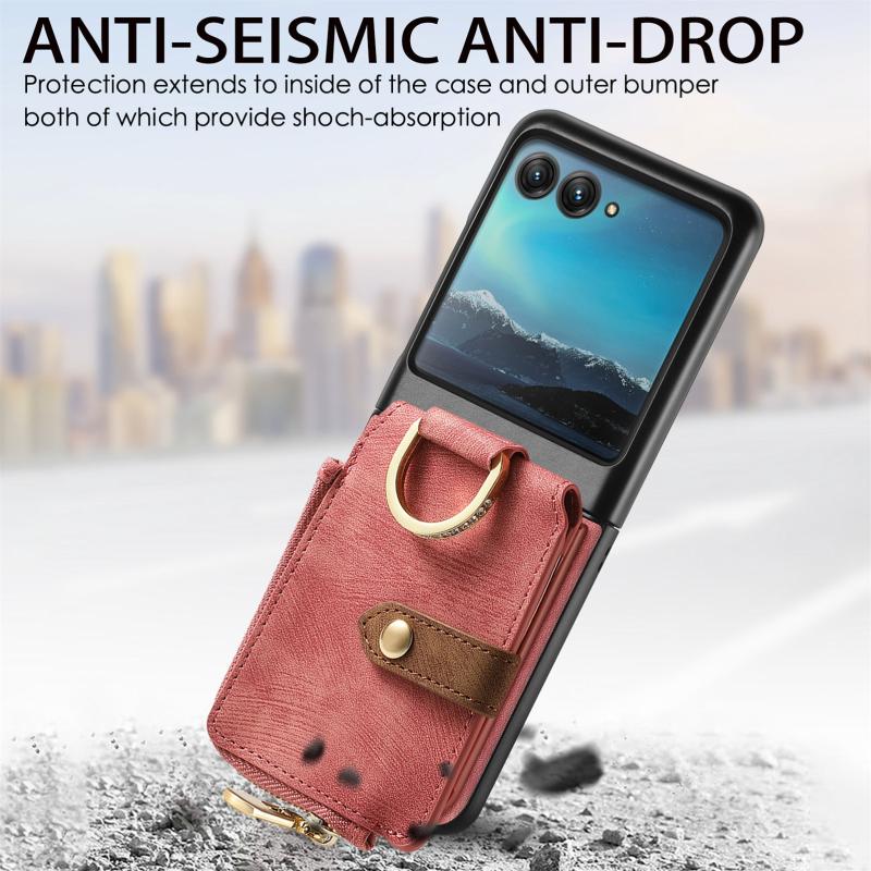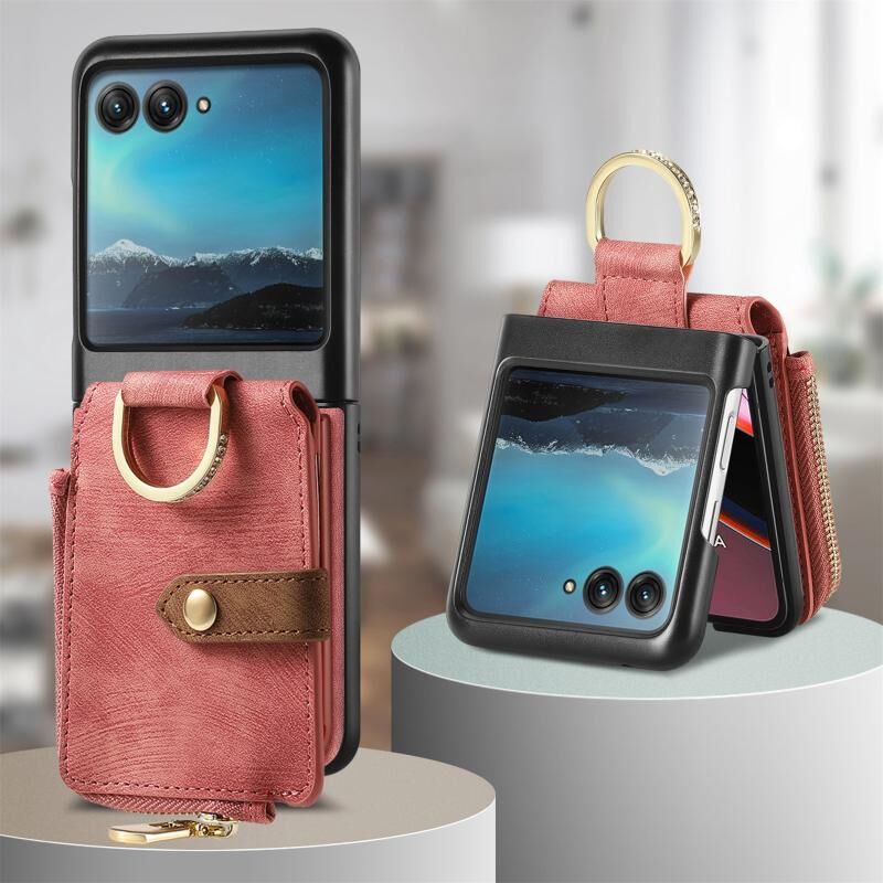 Θήκη Motorola Razr 40 Ultra Retro με Δαχτυλίδι & Θήκη Καρτών (Ροζ)