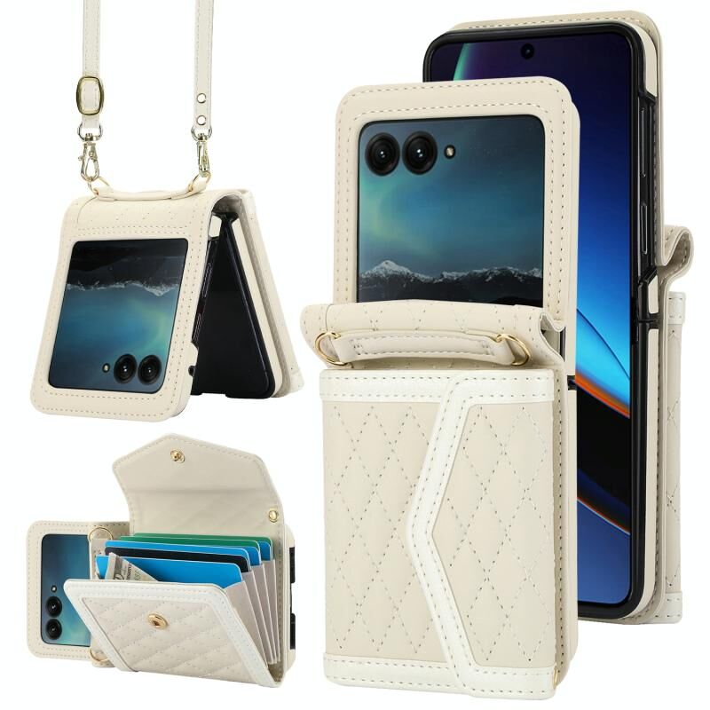 Για το Motorola Razr 40 Ultra Splicing Rhombic Texture θήκη τηλεφώνου με μακρύ & κοντό κορδόνι (μπεζ)