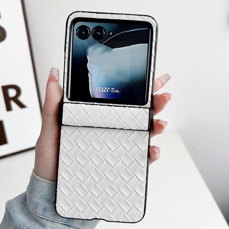 Για Motorola Razr 40 Ultra Σετ Τριών Τεμαχίων Θήκη Τηλεφώνου PU με Υφή Υφαντού (Μαύρο)