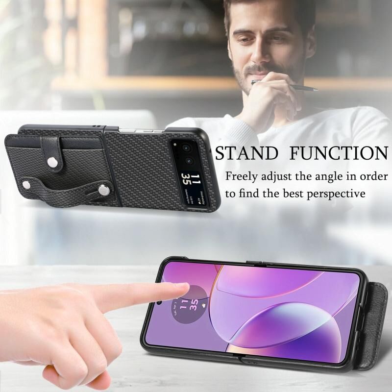 Για Motorola Razr 40 Wristband Kickstand κάρτα πορτοφόλι πίσω κάλυμμα τηλεφώνου υπόθεση (μαύρο)