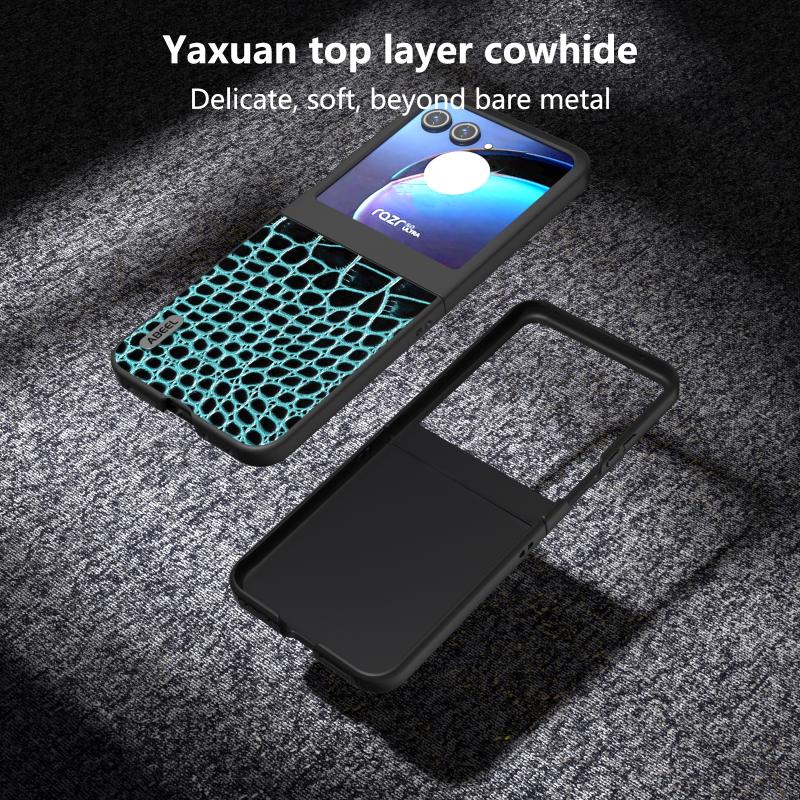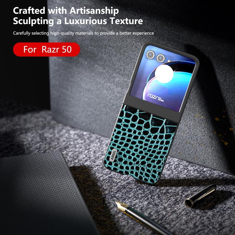Θήκη τηλεφώνου από γνήσιο δέρμα με σχέδιο κροκόδειλου για Motorola Razr 50 ABEEL, μαύρο περίγραμμα (Μπλε)