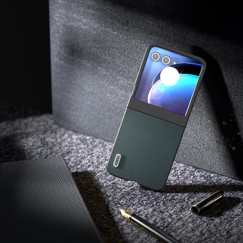 Θήκη κινητού Motorola Razr 50 ABEEL από γνήσιο δέρμα, κομψή (Λευκό)