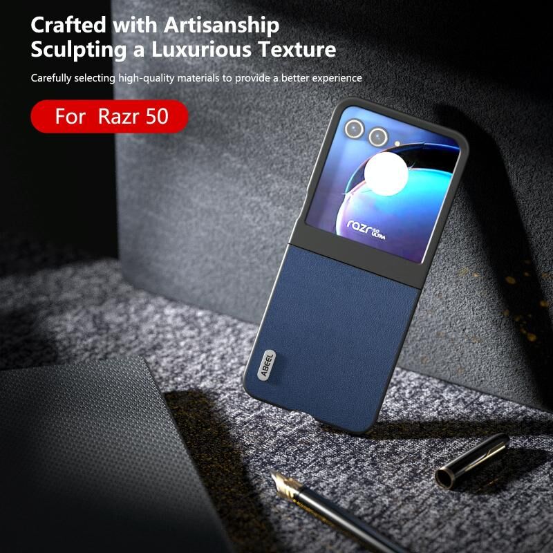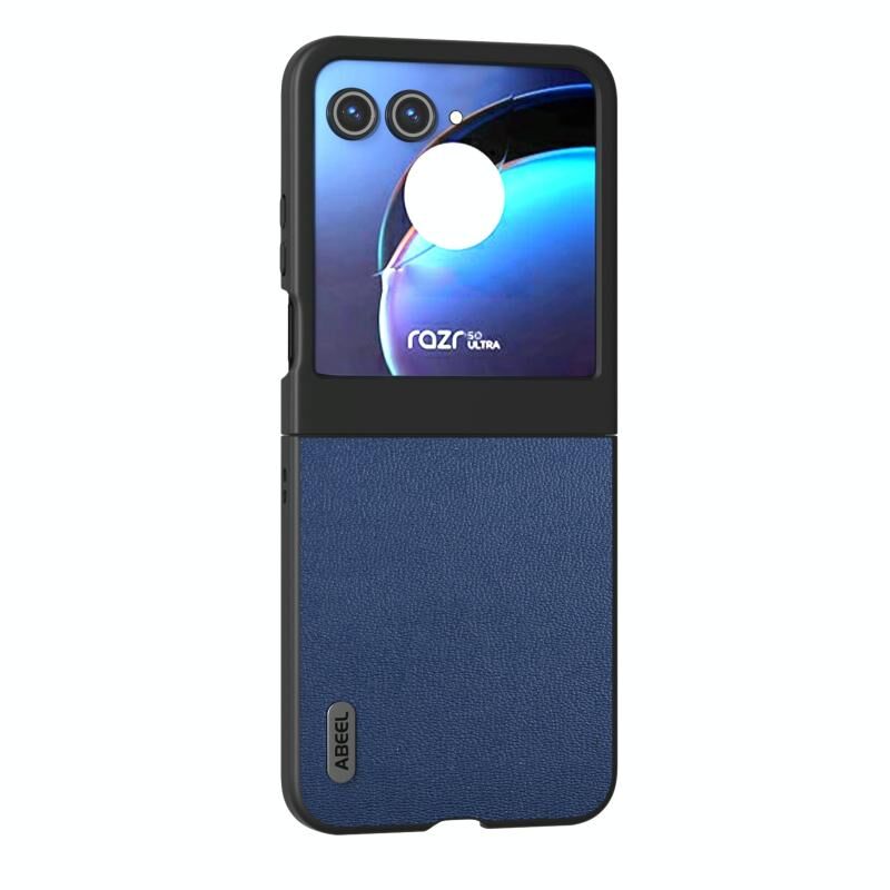 Θήκη τηλεφώνου Motorola Razr 50 ABEEL από γνήσιο δέρμα σειράς Luolai (Σκούρο μπλε)