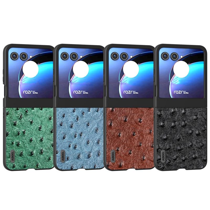 Θήκη κινητού από γνήσιο δέρμα με υφή στρουθοκάμπου για Motorola Razr 50 ABEEL (Καφέ)