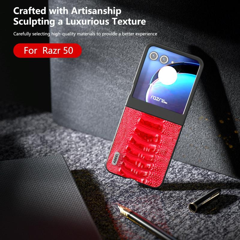 Θήκη τηλεφώνου Motorola Razr 50 ABEEL από γνήσιο δέρμα σειράς Weilai (Κόκκινο)