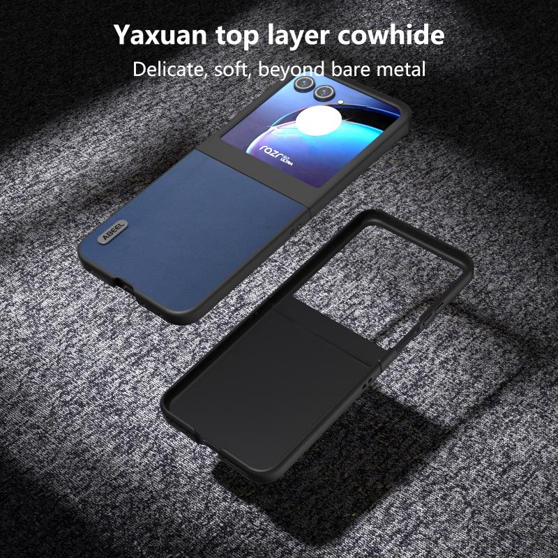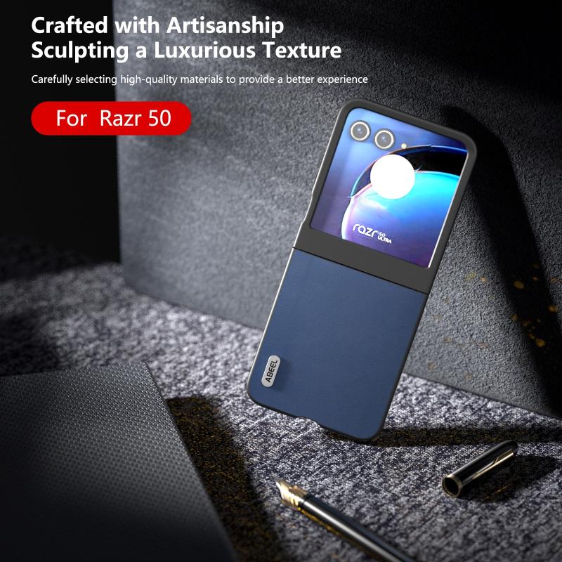 For Motorola Razr 50 ABEEL Genuine Leather Xiaoya Series Phone Case(Blue)