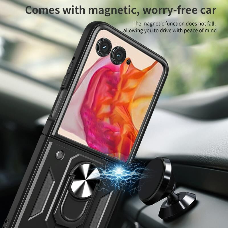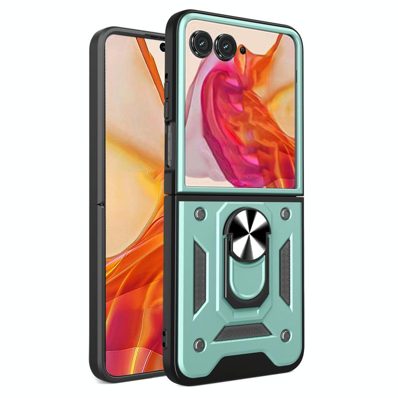 For Motorola Razr 50 Armor Ring Holder TPU Hybrid PC Phone Case(Mint Green)