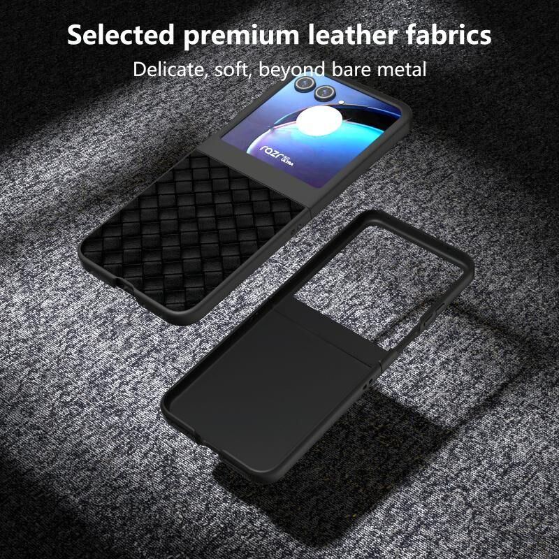 Για Motorola Razr 50 Μαύρο πλαίσιο υφασμένα υφή PU υπόθεση τηλεφώνου (μαύρο)