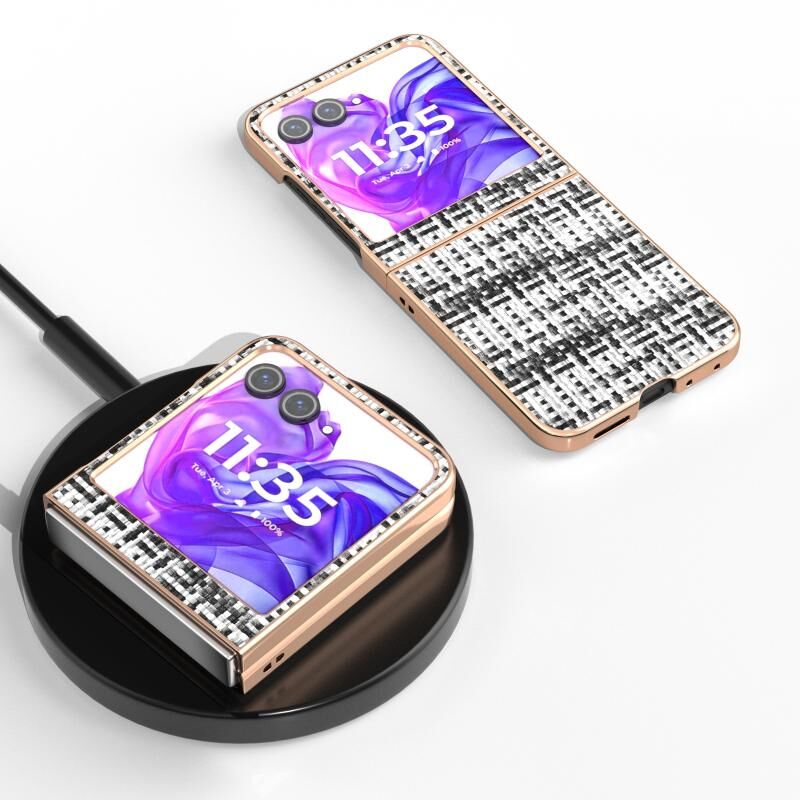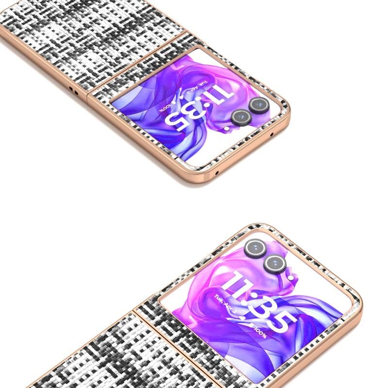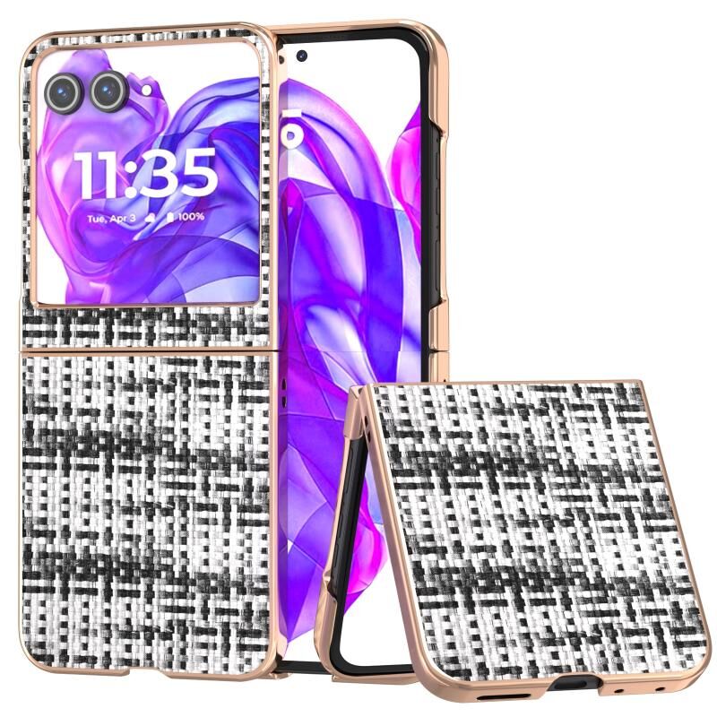 Για Motorola Razr 50 Electroplated πλαίσιο χρώμα πλέγμα υφή PU τηλέφωνο υπόθεση (μαύρο)