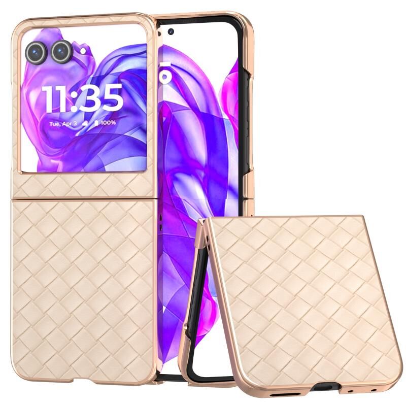 Για Motorola Razr 50 Electroplated πλαίσιο υφασμένα υφή PU τηλέφωνο υπόθεση (μπεζ)
