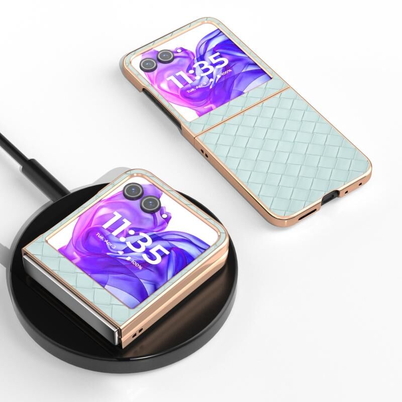 Για Motorola Razr 50 Electroplated πλαίσιο υφασμένα υφή PU τηλέφωνο υπόθεση (ανοιχτό πράσινο)