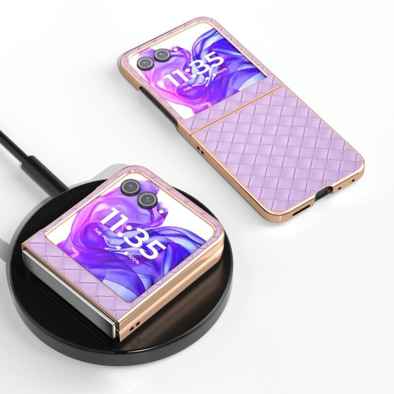 Για Motorola Razr 50 Electroplated πλαίσιο υφασμένα υφή PU τηλέφωνο υπόθεση (μωβ)