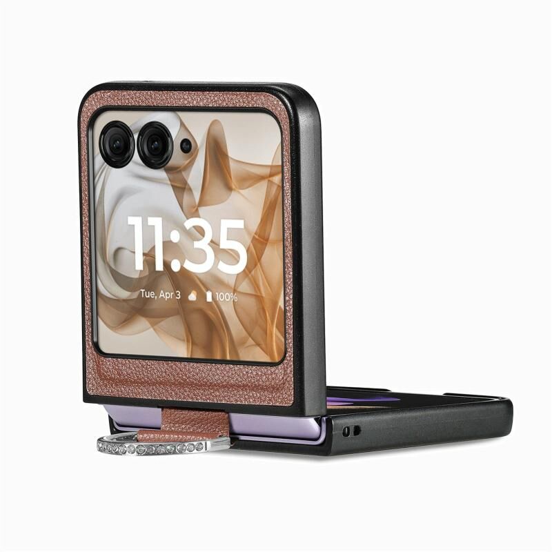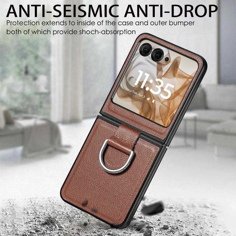 Για Motorola Razr 50 Θήκη Δέρματος με Υφή Litchi & Δαχτυλίδι (Καφέ)