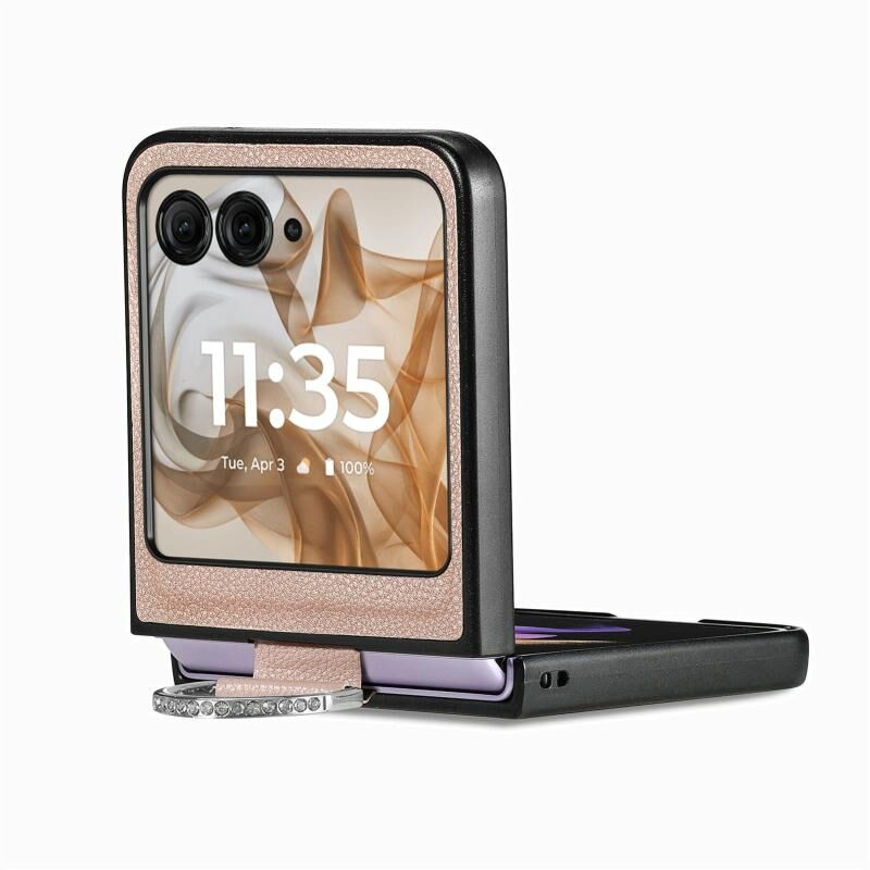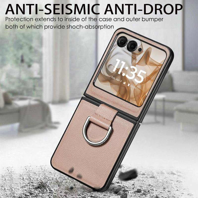 Για Motorola Razr 50 Θήκη Δέρματος με Υφή Litchi & Δαχτυλίδι (Γκρι)