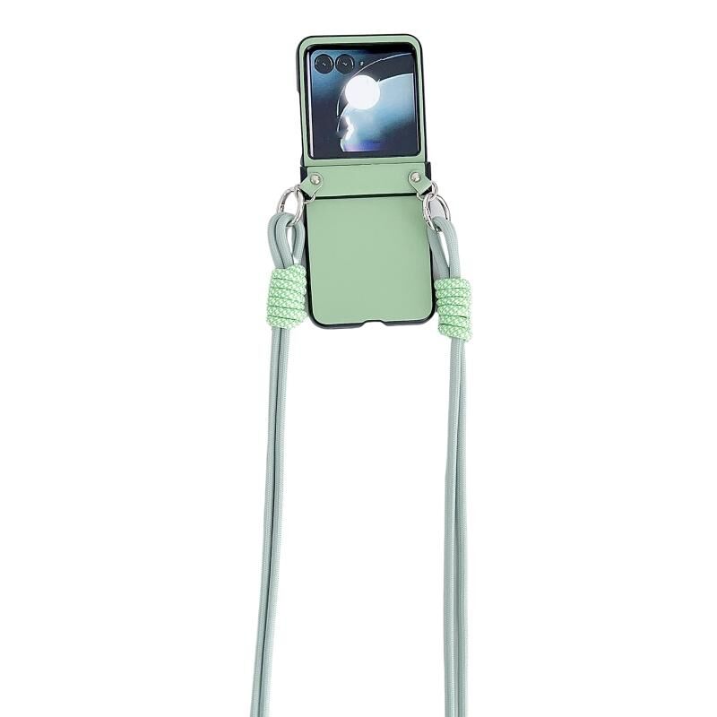 Για Motorola Razr 50 Morandi Δερμάτινη θήκη τηλεφώνου με υφή και κορδόνι (πράσινο)