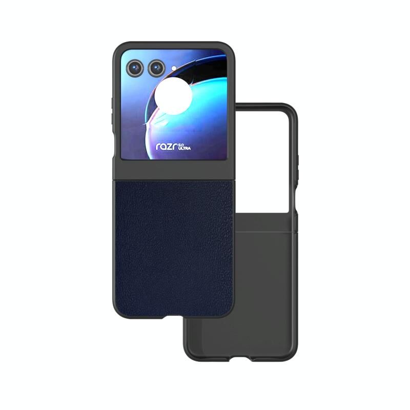 Για Motorola Razr 50 PU δέρμα μαύρο πλαίσιο πλήρους κάλυψης τηλέφωνο υπόθεση (σκούρο μπλε)