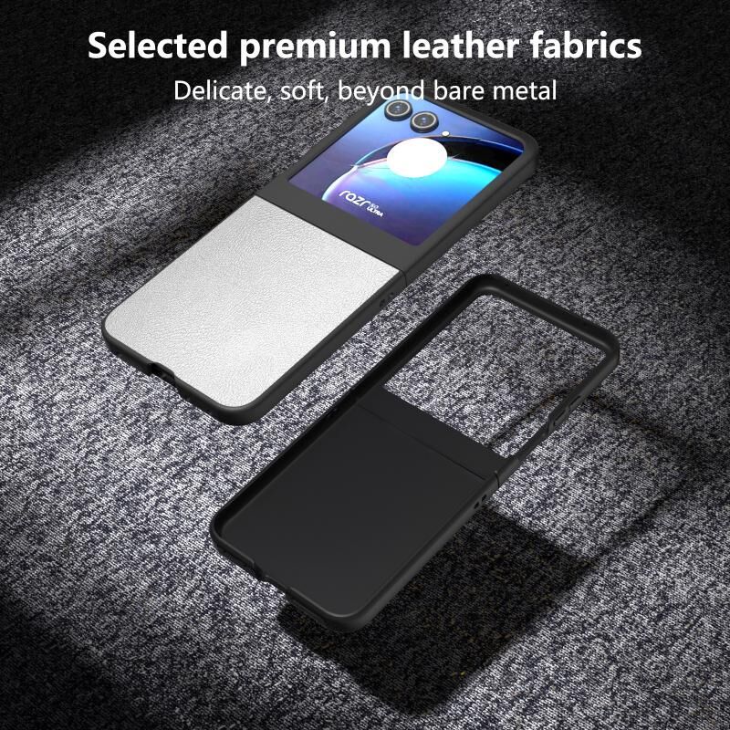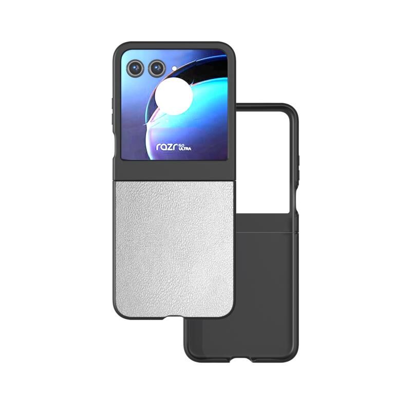 Για Motorola Razr 50 PU δέρμα μαύρο πλαίσιο πλήρους κάλυψης τηλέφωνο υπόθεση (ασημί)