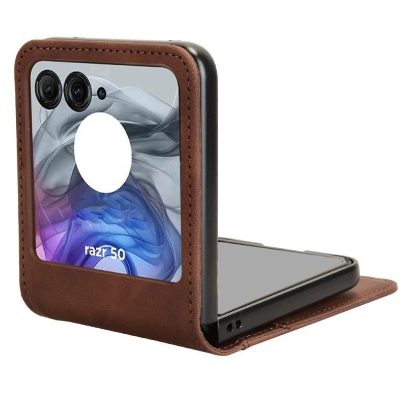 Για Motorola Razr 50 δέρμα αίσθηση κάρτα Slot δερμάτινη θήκη τηλεφώνου (καφέ)