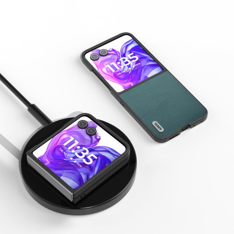 Θήκη τηλεφώνου Motorola Razr 50 Ultra ABEEL από γνήσιο δέρμα Luolai Series (Σκούρο πράσινο)