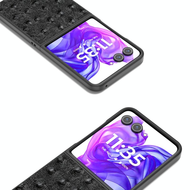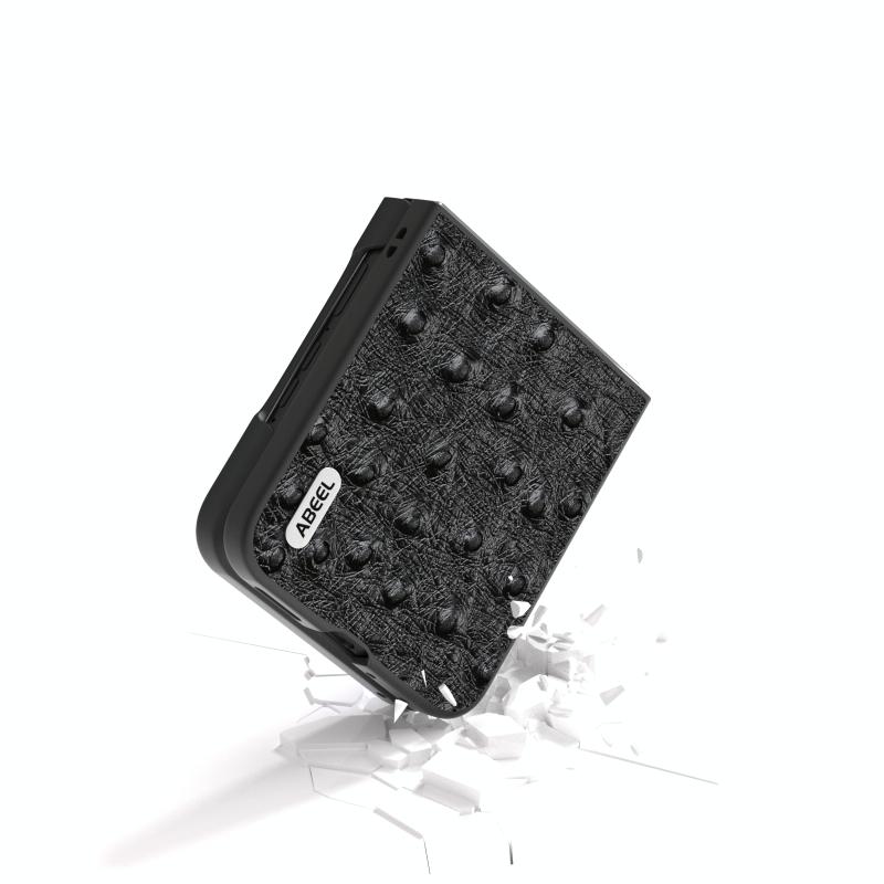 Θήκη τηλεφώνου από γνήσιο δέρμα στρουθοκάμπου για Motorola Razr 50 Ultra ABEEL (Μαύρο)