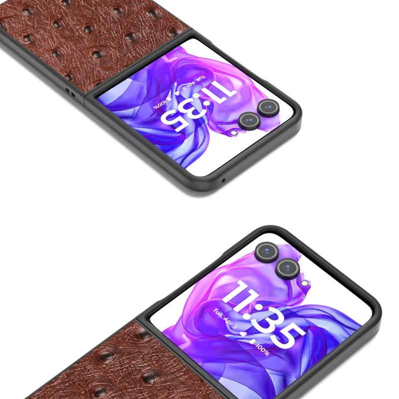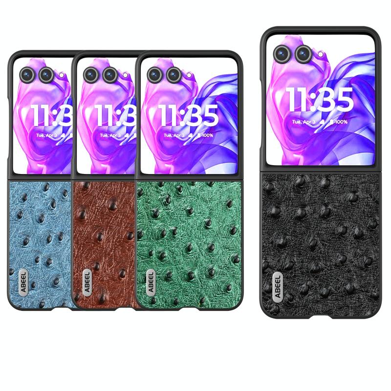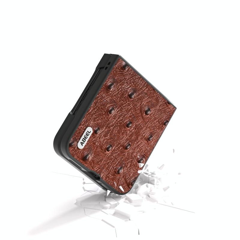 Θήκη τηλεφώνου από γνήσιο δέρμα στρουθοκάμπου για Motorola Razr 50 Ultra ABEEL (Καφέ)