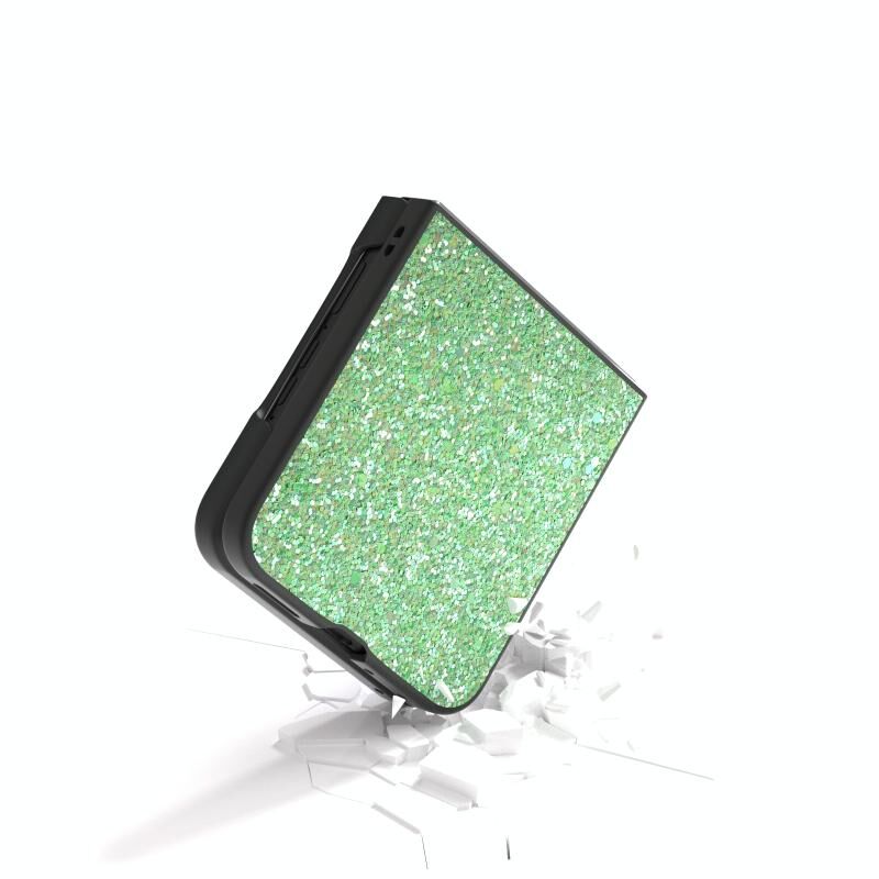 Για Motorola Razr 50 Ultra μαύρο πλαίσιο πολύχρωμο Glitter τηλέφωνο υπόθεση (σκούρο πράσινο)