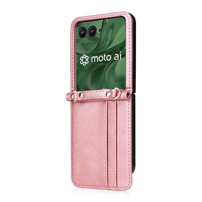 Για το Motorola Razr 50 Ultra Crossbody Card Bag PU Πτυσσόμενη θήκη τηλεφώνου (ροζ)