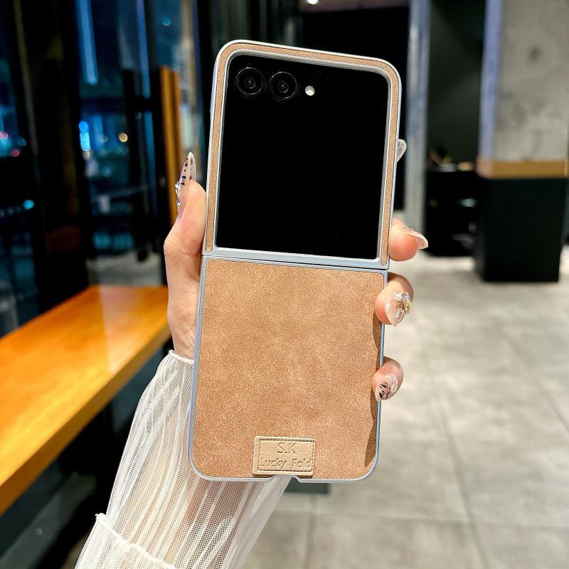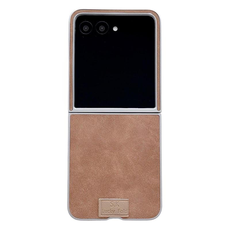 For Motorola Razr 50 Ultra Lamb Leather Cork PU + PC Brown Phone Case(Silver Edge)