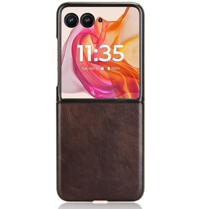 Για Motorola Razr 50 Ultra Litchi Υφή πίσω κάλυμμα τηλέφωνο υπόθεση (καφέ)