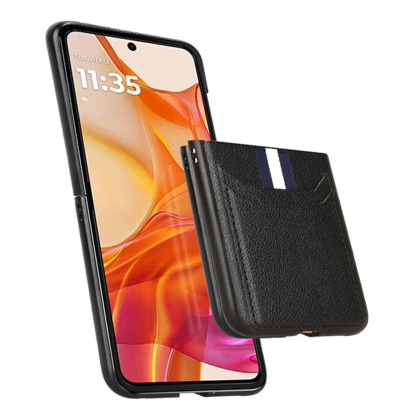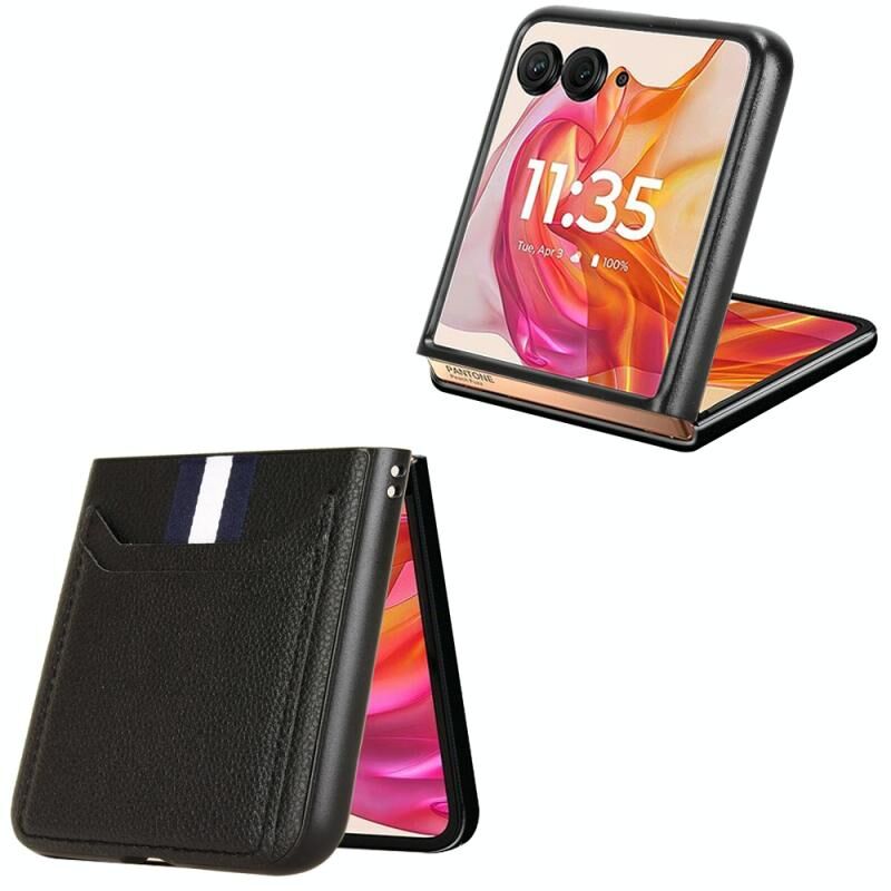 Για το Motorola Razr 50 Ultra Litchi Υφή Υποδοχή κάρτας τηλέφωνο υπόθεση (μαύρο)