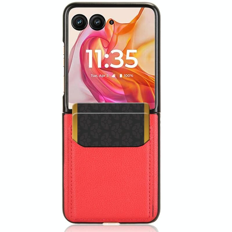Για Motorola Razr 50 Ultra Litchi Υφή Υποδοχή κάρτας υπόθεση τηλεφώνου (κόκκινο)