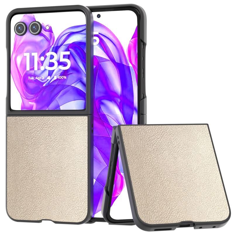 Για Motorola Razr 50 Ultra PU δέρμα μαύρο πλαίσιο πλήρους κάλυψης τηλέφωνο υπόθεση (Χρυσός)