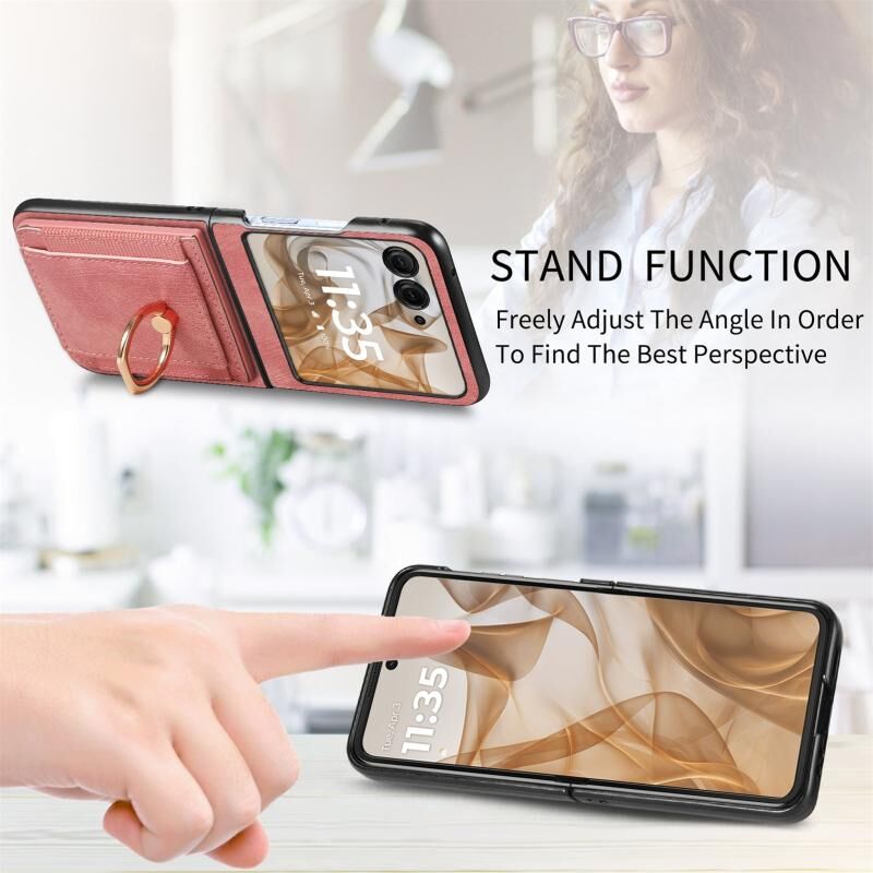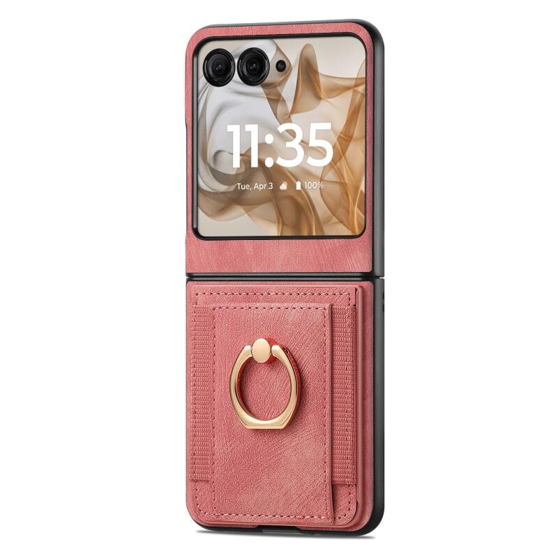 Για το Motorola Razr 50 Ultra Retro δέρμα-συναίσθημα δαχτυλίδι κάρτα τσάντα υπόθεση τηλεφώνου (ροζ)