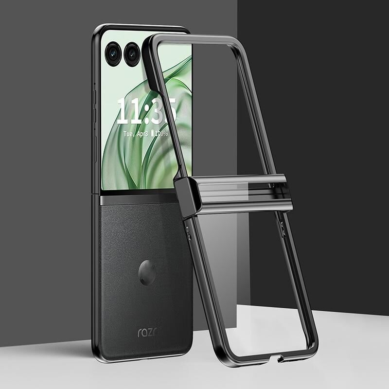 Για Motorola Razr 50 Ultra Τρία μέρη 6D Electroplating PC Shockproof τηλέφωνο υπόθεση (μαύρο)