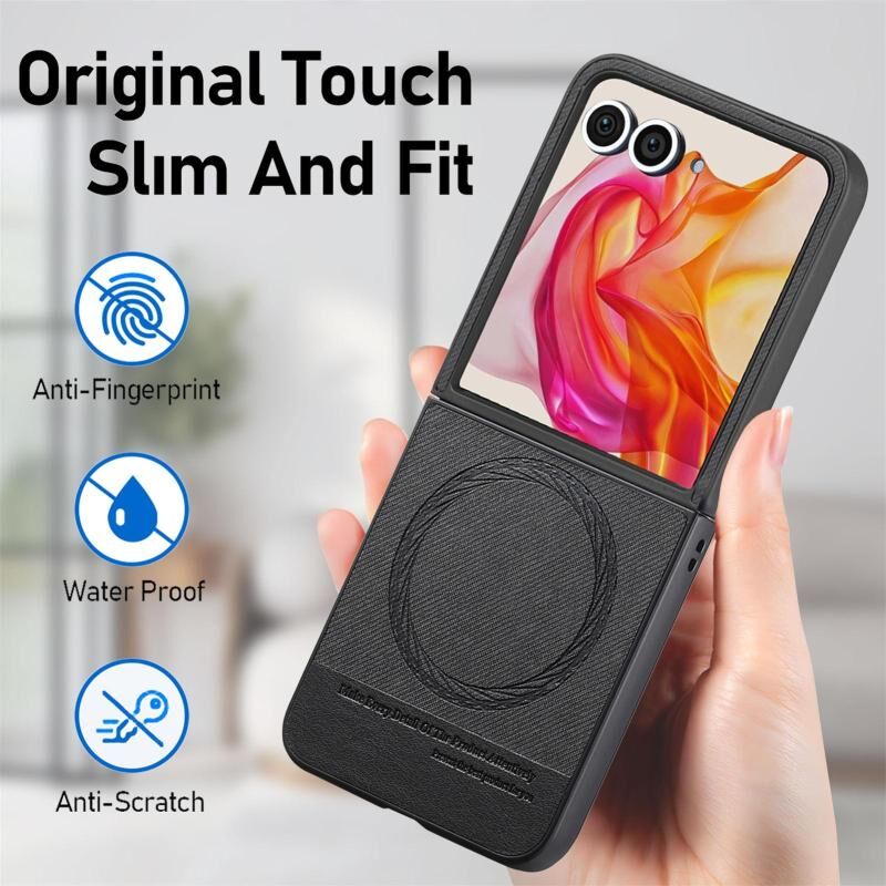 Θήκη κινητού τηλεφώνου με μαγνητική πλάτη για Motorola Razr 50 Ultra, από ύφασμα Twill και δέρμα (Μαύρο)