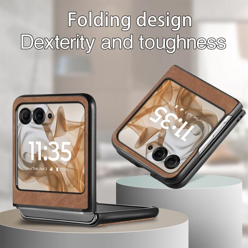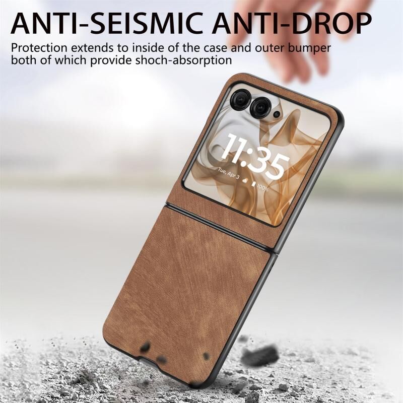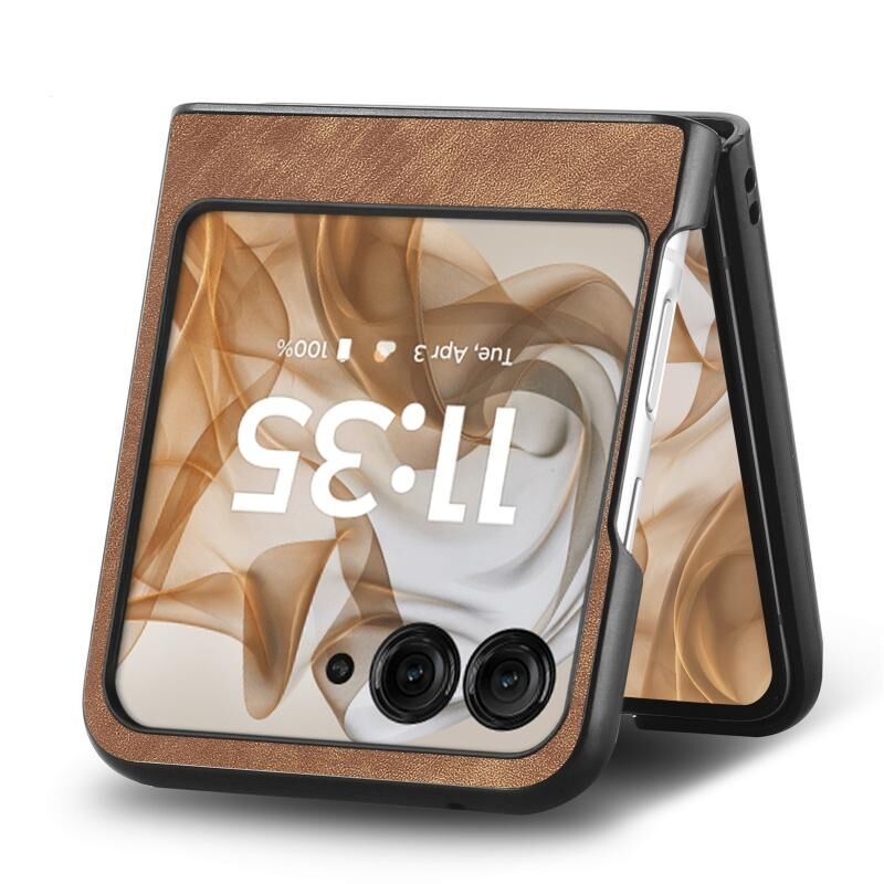 Για Motorola Razr 50 Ultra Vintage δέρμα PC πίσω κάλυμμα τηλέφωνο υπόθεση (καφέ)