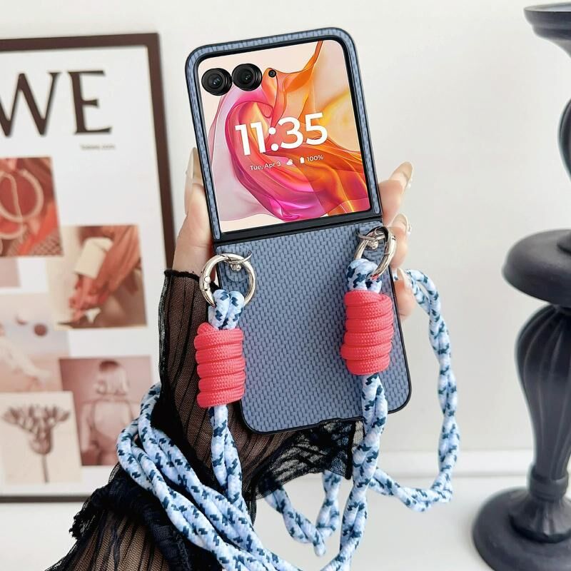Για Motorola Razr 50 Υφασμάτινη θήκη τηλεφώνου με πολύχρωμο κορδόνι (μπλε)