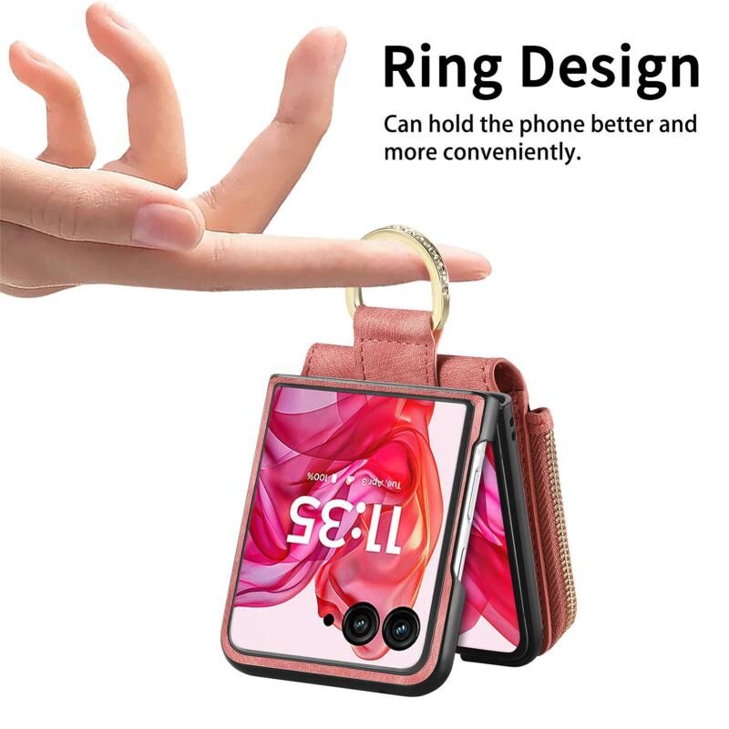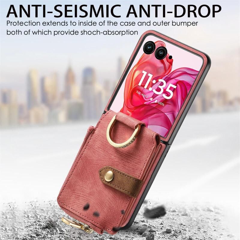 Θήκη τηλεφώνου για Motorola Razr 60 Retro Δακτύλιος Κάθετη με Φερμουάρ Πορτοφόλι (Πράσινο)