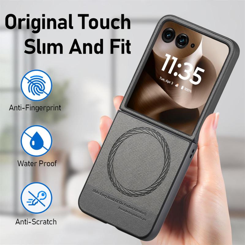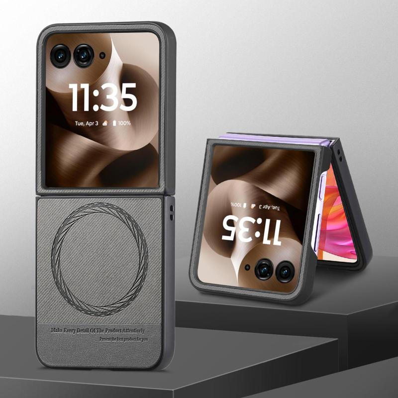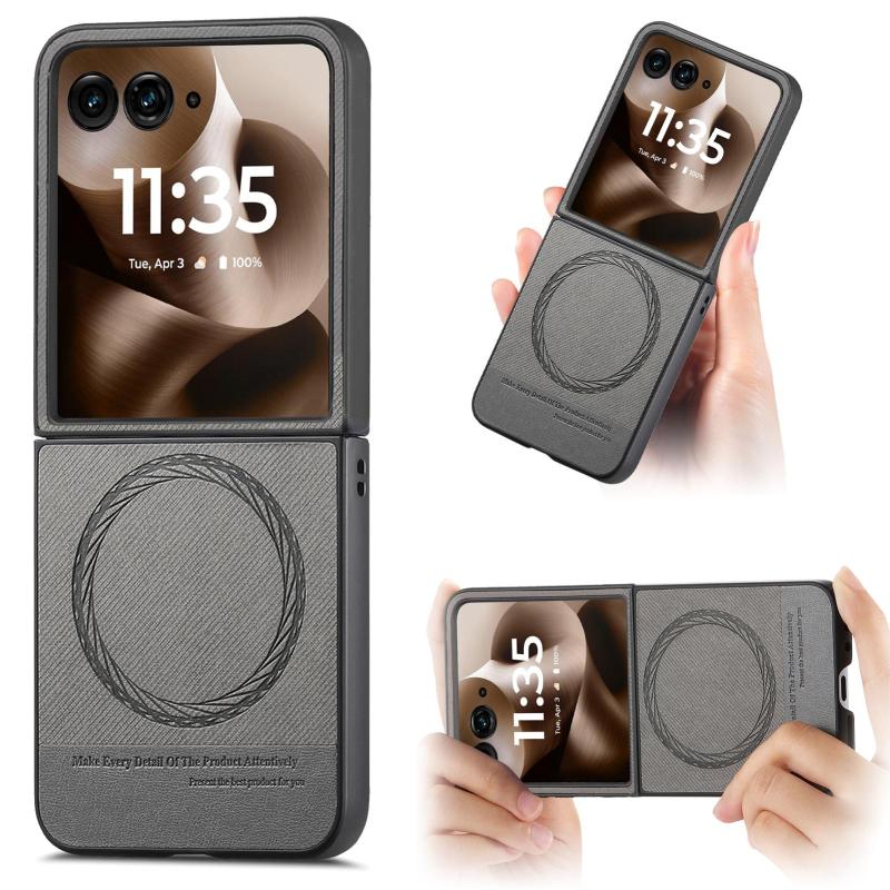 For Motorola Razr 60 Twill Fabric Leather Skin Magnetic Back Phone Case(Gray)