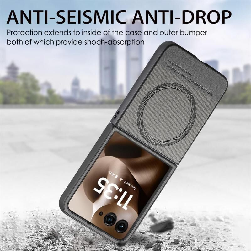 Θήκη κινητού τηλεφώνου με μαγνητική πλάτη για Motorola Razr 60, από ύφασμα Twill και δέρμα (Μαύρο)