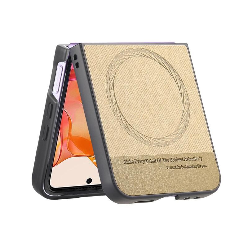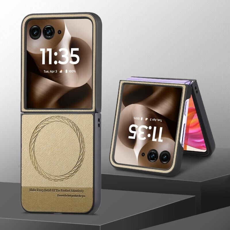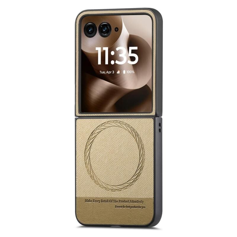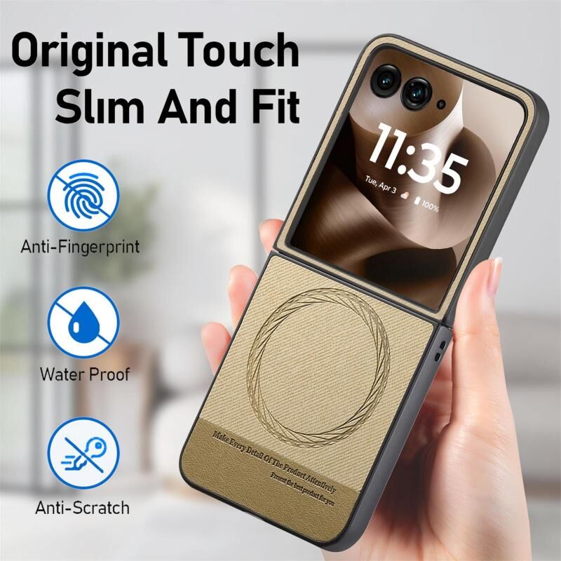 Θήκη κινητού τηλεφώνου με μαγνητική πλάτη για Motorola Razr 60, από ύφασμα Twill και δέρμα (Μαύρο)
