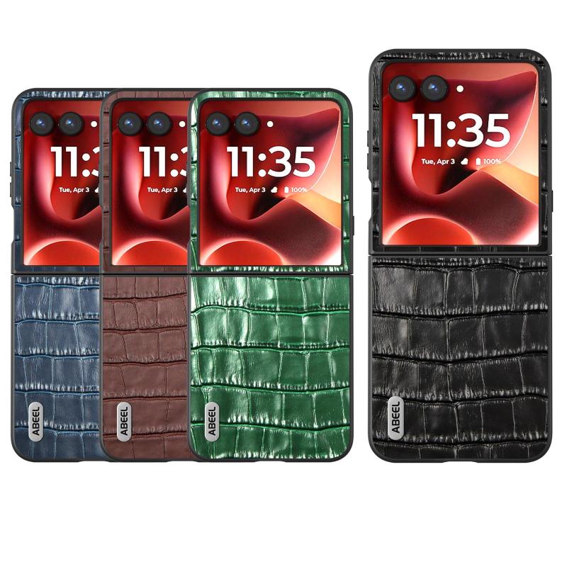 Θήκη κινητού τηλεφώνου από γνήσιο δέρμα με υφή κροκόδειλου για Motorola Razr 60 Ultra ABEEL (Καφέ)