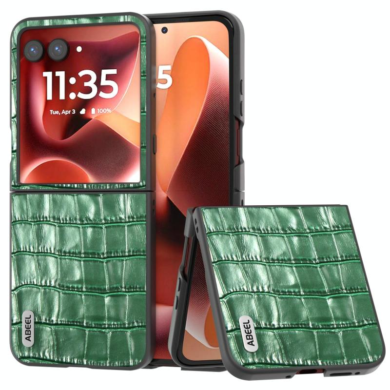 Θήκη κινητού τηλεφώνου από γνήσιο δέρμα με υφή κροκόδειλου για Motorola Razr 60 Ultra ABEEL (πράσινο)